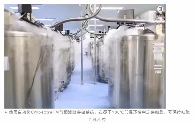 △ 使用自动化CryoextraTM气相液氮存储系统,在零下196℃低温环境中冻存细胞,可保持细胞活性不变