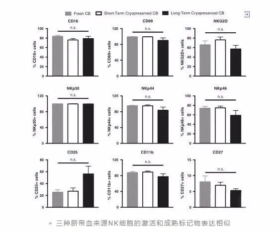 △ 三种脐带血来源NK细胞的激活和成熟标记物表达相似