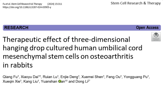 重庆市铂而斐细胞生物技术有限公司科研团队9月28日在Stem Cell Research & Therapy(IF=7.1)发表原创论文Therapeutic effect of three-dimensional hanging drop cultured human umbilical cord mesenchymal stem cells on osteoarthritis in rabbits报道其近期研究成果,文章揭示了三维悬滴培养的脐带间充质干细胞在治疗骨关节炎方面相较于传统方法培养的细胞具有更好的动物有效性,预示着更好的临床前景。